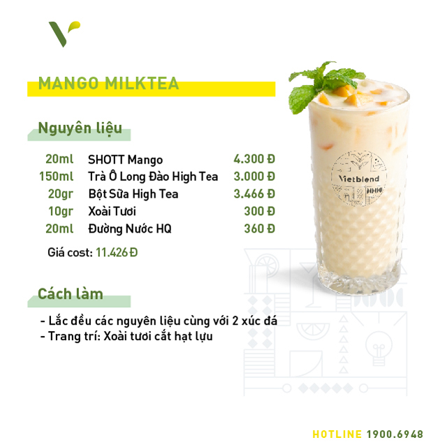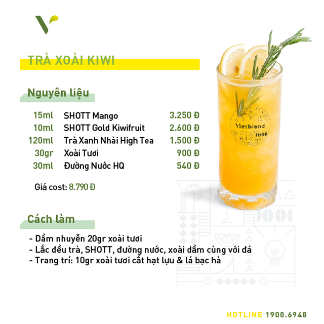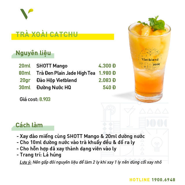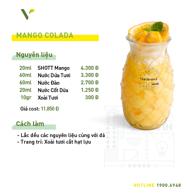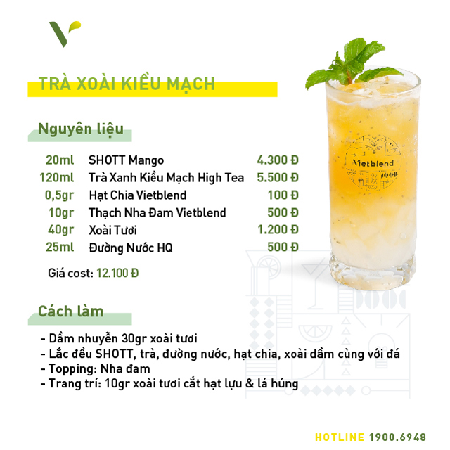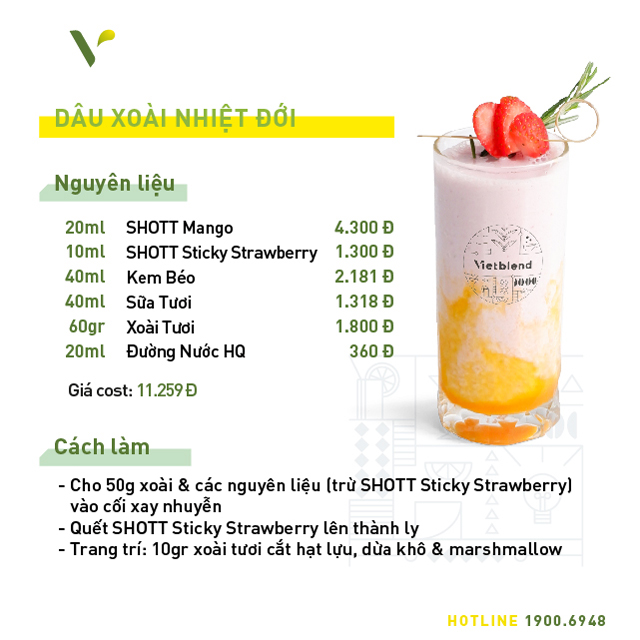 Đặc biệt, hương vị tự nhiên của xoài trong syrup mới của SHOTT sẽ ngon hơn hẳn khi được khéo léo mix trong bộ đồ uống mới và độc quyền tại Vietblend miễn phí 7 công thức anh chị có thể tham khảo dưới đây